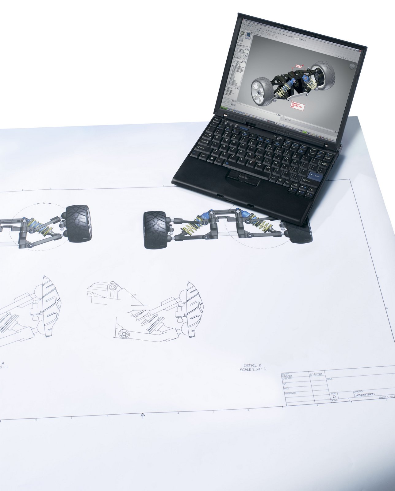 Design Review for Manufacturing 2009 hero image. Architectural blueprints, laptop, and tools on an office desk.