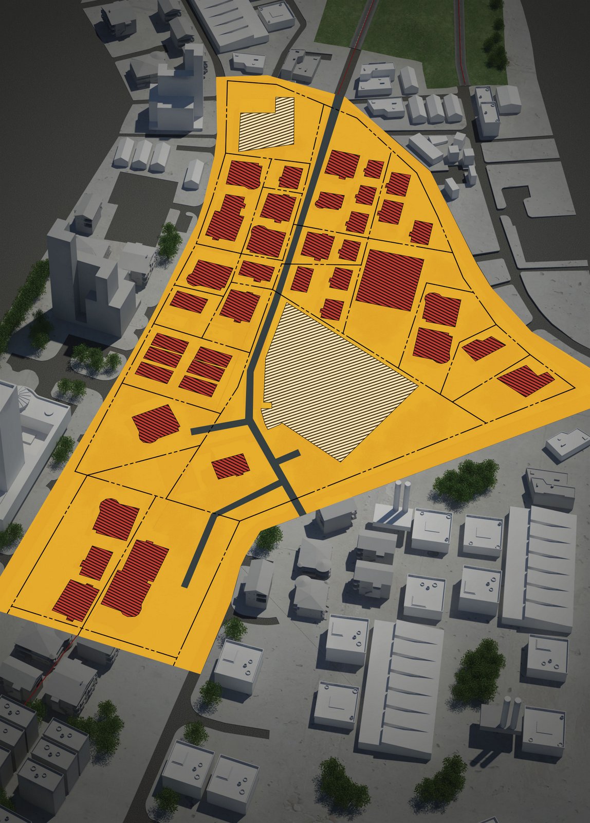 Rendering of a generic city showing land parcel information. Created for EMEA reseller templates. Image is original artwork created by Autodesk 3D artists and graphic designers.